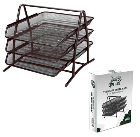 Gen-Of 3 Katlı Metal Evrak Rafı Siyah