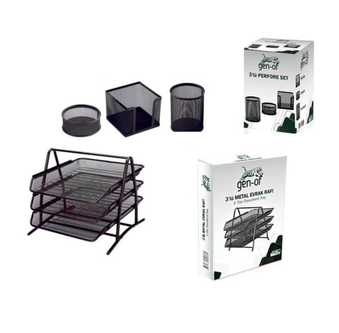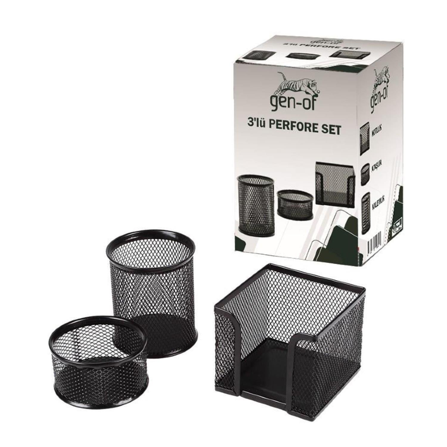 Gen-Of Perfore 3 Lü Metal Masa Üstü Seti Siyah (Kalemlik-Küpnotluk-Ataşlık)