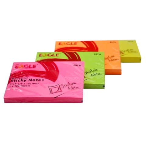 Eagle 75x100 mm Neon Renk Sticky Yapışkanlı Not Kağıdı 100 Yaprak (657N) 4 Adet