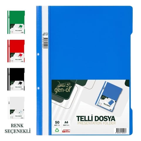 Gen-Of Telli Dosya 50 Li 1 Paket A4 Mavi Siyah Kırmızı Yeşil