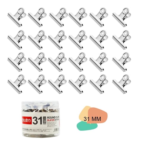Gen-Of Round Clips 31 mm Gümüş Metal Maşa Kıskaç Plastik Kutu 24 Lü (DL6125)