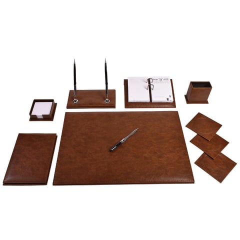 Gülpaş Sümen Takımı 11 Parça Napa Suni Deri Çift Kalemli Optik Kahverengi Kod:248